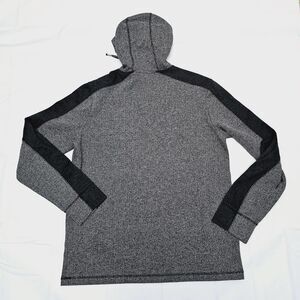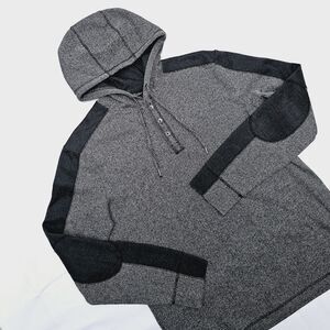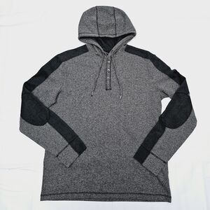 Marc Anthony Mens Large Hooded Pullover Sweater Henley Herringbone Elbow patches