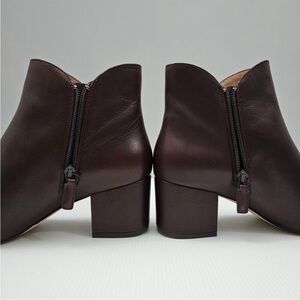 Elegant dark brown ankle boots. Smooth leather finish with block heel. Perfect for any occasion.