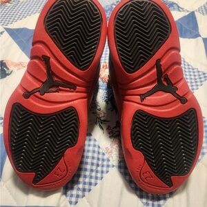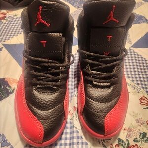 NWOT Jordan sneakers for kids. Black leather with red accents. Comfortable and durable design.