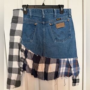 Urban Renewal/Wrangler Blue Denim Skirt with Plaid Accents