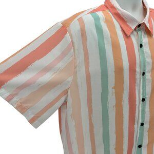 NEW Vatpave Mens XL Shirt Multicolor Stripe Button Relaxed Fit Hawaiian Shirt Retro