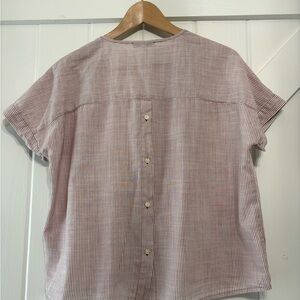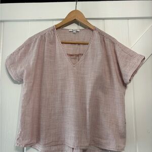 Madewell Red and White striped V-Neck Women's Top with button accents Feminine S