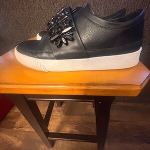 Chic black sneakers with a striking embellished strap. Ideal for adding flair to any outfit.