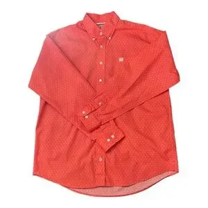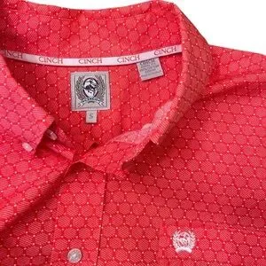 Cinch Shirt Red Orange Hexagon Geometric Button Down Western Rodeo Men’s Small