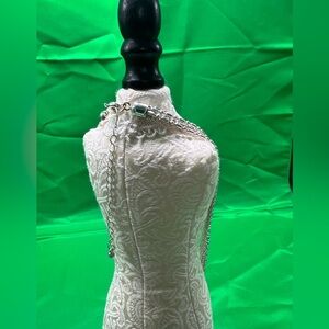 This elegant silver necklace adds a touch of sophistication to any outfit. Perfect for any occasion.