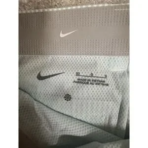 The product is a pair of Nike Golf Men's Tour 8 Inch Chino Seersucker Shorts in Blue/White, size 33. Made of a polyester/cotton/spandex blend, these athletic shorts feature a zip closure and are designed for golf performance. With a seersucker pattern and a 8-inch inseam, these shorts offer both style and functionality for the active man. The Nike brand ensures quality and performance for any golf enthusiast looking for comfortable and durable activewear.