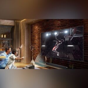 * 42 ANSI lumens; Built-in Bluetooth wireless transmitter; 2 HDMI inputs; USB port
