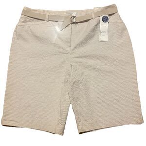 Charter Club Tummy Control Seersucker Belted Shorts 14 Beige Stripe Summer