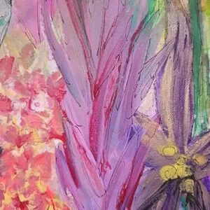 Brighten your space with this vibrant floral canvas art. Featuring a stunning blend of pink, purple, and orange hues, this piece adds a splash of color to any room. Perfect for art lovers seeking a lively addition to their home decor.