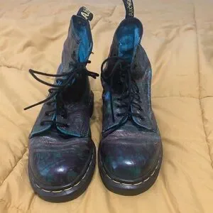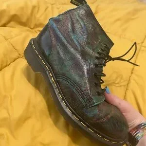 Stylish iridescent lace-up boots with a unique color blend. Doc Martens worn occasionally with a lot of love and life left in them! Fit a size 8