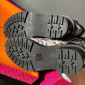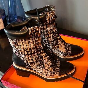 Tory Burch Black and Cream Tweed Lace-Up Boots