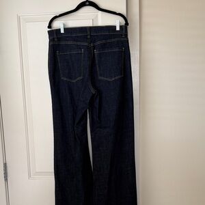 Chic dark indigo jeans with a flattering flare. Straight leg jean. Perfect for elevating any outfit.