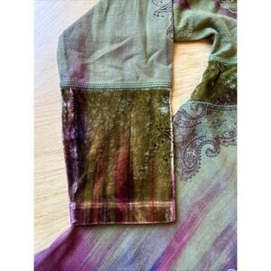 One World Green Multi Velvet Top Med-L Embroidered Flare Sleeve Whimsigoth Boho