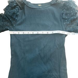 Free People Women's Kiss Kiss Mesh Ruffle Ribbed Long Sleeve Top Green Size XXS