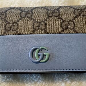 Authentic Gucci wallet new never used has a change zipper pouch five card slots and dollar bill pocket. Smoke free home. Offers always considered.