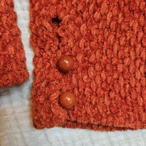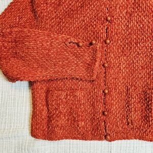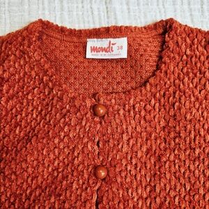 Vintage Boucle Cropped Cardigan With Round Buttons Orange Red S