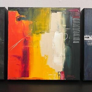 Karola Steinbrecher paintings. 5 12X12 pieces, 1 16X16