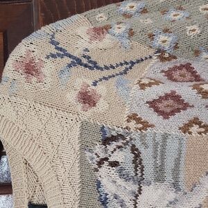 Vintage hand knit Ralph Lauren equestrian patchwork design sweater. Features equestrian and geometric patterns. Purchased this sweater new approximately 20 years ago. Maybe had it on twice. Great vintage condition. 95% cotton, 5% linen. Ideal for casual wear. Size S. 18" shoulder to shoulder, 20" armpit to armpit, 24" length.