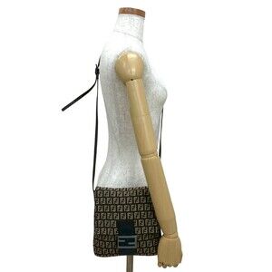 FENDI Zucchino FF Canvas Leather Mini Shoulder Bag Pochette Sacoche Brown 86738