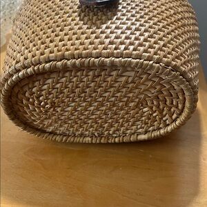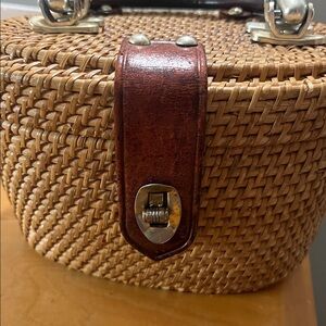 Vintage Nantucket Rattan purse basket with leather details