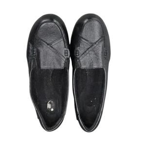 Used Dr Scholls Shoes Womens 7.5 Loafer Slip On Flats Black Leather Classic Comfort