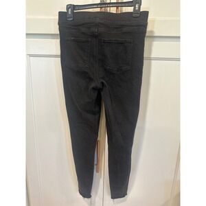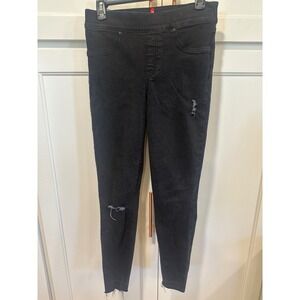 Spanx Distressed Denim Jeggings Black Pull On Medium Wash Ripped Knee