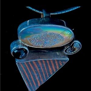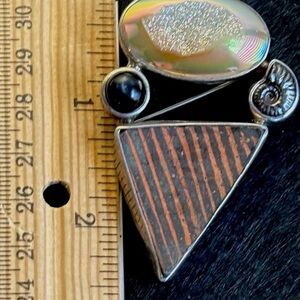 This is a unique artisan piece — perfect for collectors of geological jewelry, modernist sterling silver, or statement pendants. A substantial designer feel with interesting textures and natural elements.
