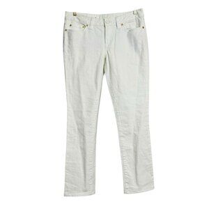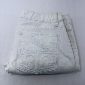 Tory Burch Skinny Jeans Pants Women Sz 28 White Embroidery Designer Logo Preppy