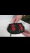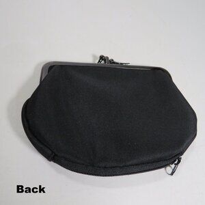 black change purse with red embroidered flowers and a secret zippered pocket