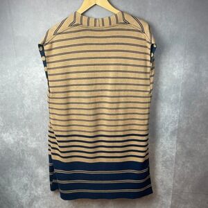 Chico's Cardigan Duster Womens 2 Large Long Line Open Front Sleeveless Tan Blue