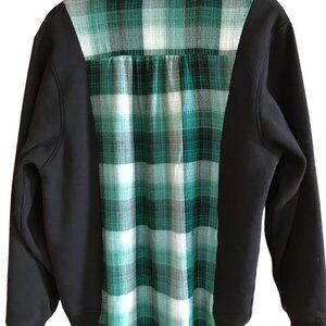 Colors: Black sweatshirt base spliced with green plaid flannel