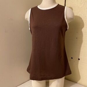 DOKOTOO Brown White Trim Sleeveless Tank Top Women Size M NWT