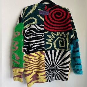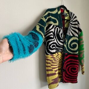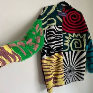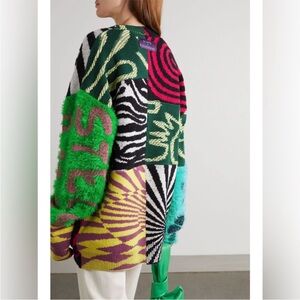 EUC STELLA MCCARTNEY + Ed Curtis patchwork jacquard-knit wool cardigan