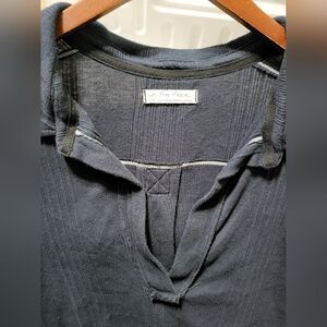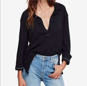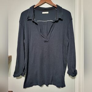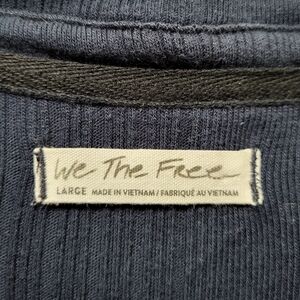We The Free FP Annie Ribbed Collared Oversized Navy Blue Pullover Top Size Large