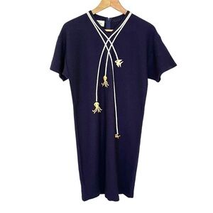Vintage Steve Fabrikant Nautical Angler Fish Ornament Shift Mini Sweater Dress