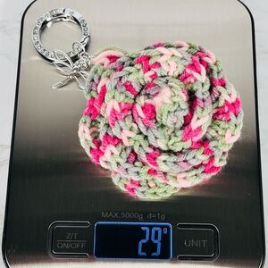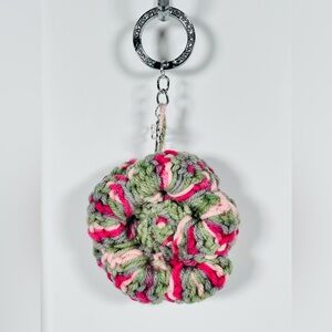 Crochet Ombre Flower Bag Charm with Dragonfly