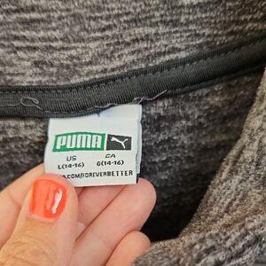 Charcoal full-zip jacket featuring Puma logo. Ideal for everyday comfort.