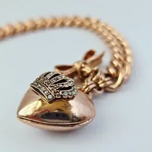 2013 Vintage Juicy Couture Rose Gold Heart Locket Bracelet Bow Toggle Closure