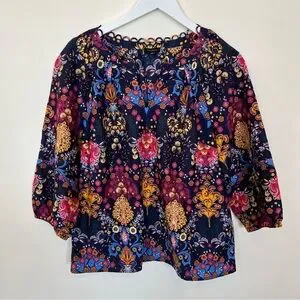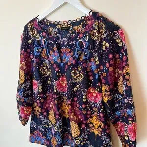 Talbots Blouse Womens Medium Multicolor Floral Top 3/4 Balloon Sleeve Boho
