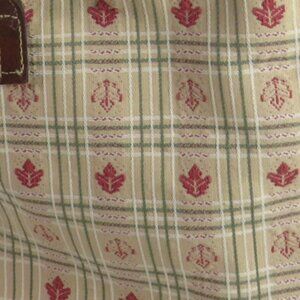 Longaberger Plaid Leaf Acorn Small Tote Handbag Faux Leather Straps Burgundy