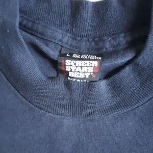 -Vintage, single stitched, textured graphic print.