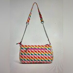New! Vibrant and stylish, this embellished floral bag is perfect for adding a pop of color to any outfit. Featuring florals & a butterfly pattern in a beautiful mix of pink, yellow, and green hues, it's a must-have accessory for the fashion-forward.