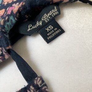 This super sweet maxi dress from Lucky Brand features a halter neckline, a keyhole opening between the back shoulders, a tassel tie waistband and a 22” side slit on the right side. The care tag has been removed but I believe it’s a modal/spandex blend. This dress is so cute and in otherwise excellent condition!