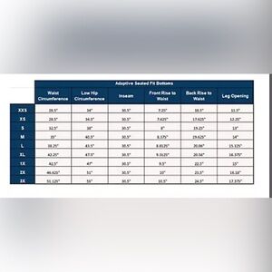 Adaptive Features: seated fit, four metal buttons at leg hem closure, elastic folded waistband with three pull-up loops, bottom leg hem placket