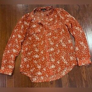 Long sleeve rust heart print sheer button down top size medium