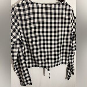4 for $25 💜DIVIDED by H&M Gingham Tie Front Black/White Top Long Sleeves Size S