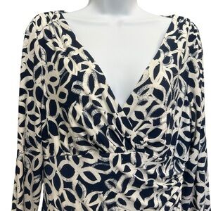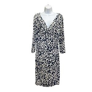 Lauren Ralph Lauren Blue White Abstract Floral Stretch Faux Wrap Dress Size 10