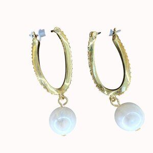 J.Crew Gold-Tone Hoop Earrings With Faux Pearl Drops & Hypoallergenic Posts