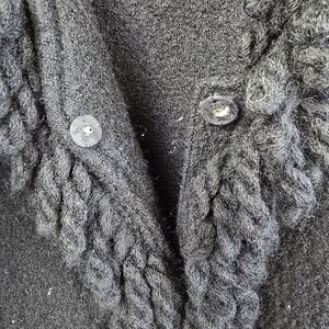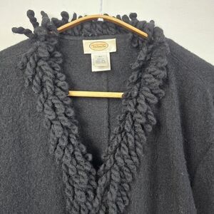 Talbots Black Fluffy 100% Boiled Wool Fringe Cardigan size XL
