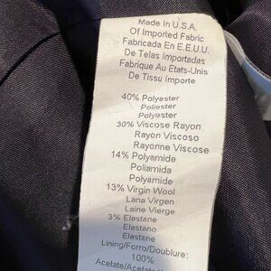 Material: 40% Polyester, 30% Viscose Rayon, 14% Polyamide, 13% Virgin Wool, 3% Elastane, Lining: 100% Acetate